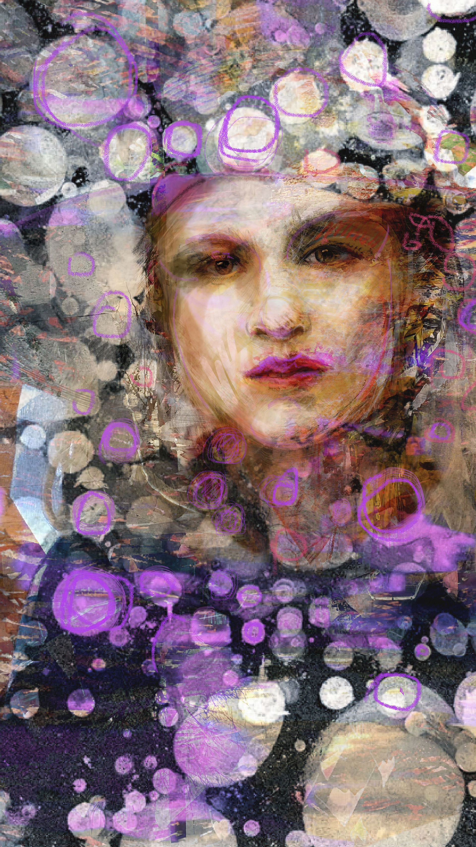 Featuring multidisciplinary works by Nancy Jo Ward, Eda Zamanpur, Anıl “Ayna” Taşezen, Nelten Wolde, Elen Deliss, Bradford Graves, H. Spencer Young, and Tinuade Oyelowo, the show spanned painting, photography, collage, video, installation, and NFT. Standout works included Black Lips by Tinuade Oyelowo, exploring gaze, gender, and power; Lost Symbols of the Techno Tribe by H. Spencer Young, a reflection on the oversaturation of images in the digital age; Childhood, Interrupted by Eda Zamanpur, an emotional video collage of childhood photos reimagined through the trauma of war; Kiss of Peace by Anıl “Ayna” Taşezen, a graffiti-inspired commentary on forgiveness and coexistence; Abstract Landscapes by Nelten Wolde, poetic digital collages rooted in pilgrim walks and nature; Cosmic Portraits by Elen Deliss, vibrant multimedia works exploring geometry, color psychology, and energy; Digital Gaze by Nancy Jo Ward, fictional AI-generated portraits interrogating beauty and identity; and Limestone Dialogues by the late Bradford Graves, sculptural works steeped in archaeology and philosophical reflection.